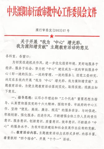 关于开展“我为‘中心’增光彩,我为溧阳增贡献”主题教育活动的意见