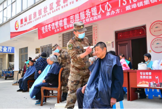 下午1点半,部队官兵来到社区广场。集镇社区退伍老兵和军属、社区干部也组织起了一支志愿者便民服务队。他们一起摆出摊点,有小家电维修、水电维修、缝补、理发、配钥匙……小摊点吸引了不少过往群众。在活动现场,理发摊位排队等候的群众最多,身穿迷彩服和绿马甲的志愿者随处可见,他们忙碌的身影,成为学雷锋志愿服务活动中一道亮丽的风景线。