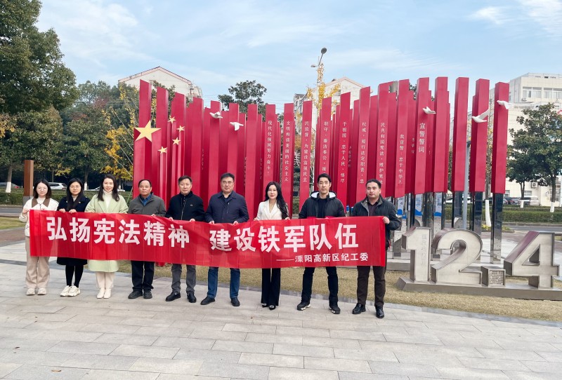 在第十个国家宪法日,为深入学习贯彻党的二十大精神,进一步学习宣传贯彻习近平法治思想,切实增强宪法意识,弘扬社会主义法治精神,有效维护宪法权威,12月4日,溧阳高新区纪工委开展“弘扬宪法精神 建设铁军队伍”主题活动。