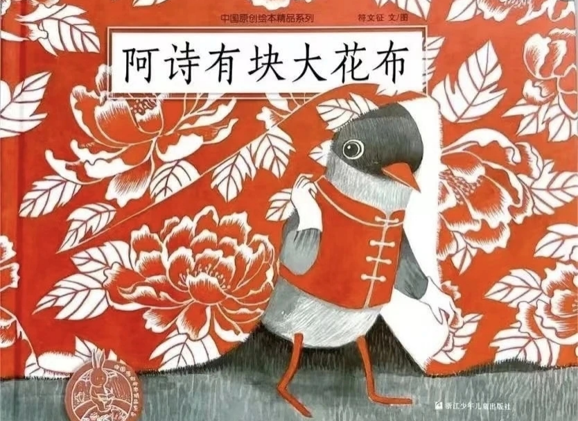 《阿诗有块大花布》是一本中国原创精品绘本,故事很简单:灰喜鹊阿诗个子小小,羽毛少少,鸟儿们觉得她很不起眼,有时候不和她玩,阿诗觉得很孤单。忽然她听到了叹气声,原来大象希望有一件衬衫。热心的阿诗拿来了一块大花布,这块大花布真大呀——两页纸都画不下。阿诗用这块大花布给大象做了一件衬衫,大象很开心。接下来,阿诗又用剩下的花布为黑熊、斑马、狐狸、考拉、小松鼠、小蜗牛做了裙子、沙发套、围巾、背包、布袋、棉被,小动物们都很高兴。作者用一个简单的故事告诉孩子们一个深刻的道理:我们要学会付出、学会分享,这样才能收获更多情谊和美好。