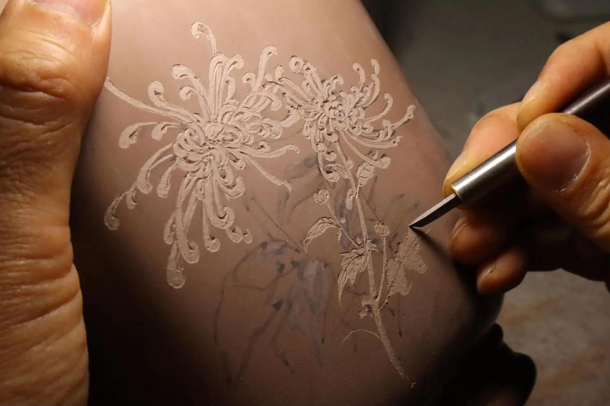 以刀代笔,在陶土上勾勒千年风骨。一炉沉香,一盏清茶,于喧闹都市中寻一处宁静。当紫砂的温润遇见菊花的傲霜风骨,一场穿越时空的金石对话,就此开启……零基础入门,从紫砂泥性认识到雕刻工具运用,从菊花形态解析到构图要领,资深老师手把手带领,无需美术功底也能快速上手。金石韵味,传统技艺传承。学习正宗陶刻刀法——双入正刀勾勒轮廓,单入侧刀刻画叶脉,在刀起刀落间感受紫砂雕刻独有的金石质感与文人气息。专属创作,打造个人雅器。完成一件独一无二的菊花主题紫砂主人杯,从设计图稿到亲手雕刻,全程独立创作,成就属于你的“东篱雅器”。提升艺术修养,深入理解中国菊花文化意象。掌握文人画构图精髓,在实操中提升审美眼光与艺术表达能力。“采菊东篱下,悠然见南山——虽不能至,心向往之。”在这个秋天,让我们暂别喧嚣,在陶刻声中找回内心的宁静,打造一件会随岁月温养的随身雅物。