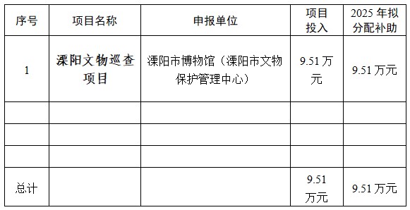根据《溧阳市文物保护专项资金管理办法》规定,现将我市2025年文物保护专项资金拟补助项目公示如下: