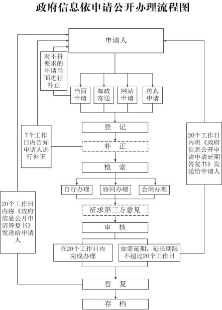 本机关处理政府信息公开申请的一般流程可以参见流程图: