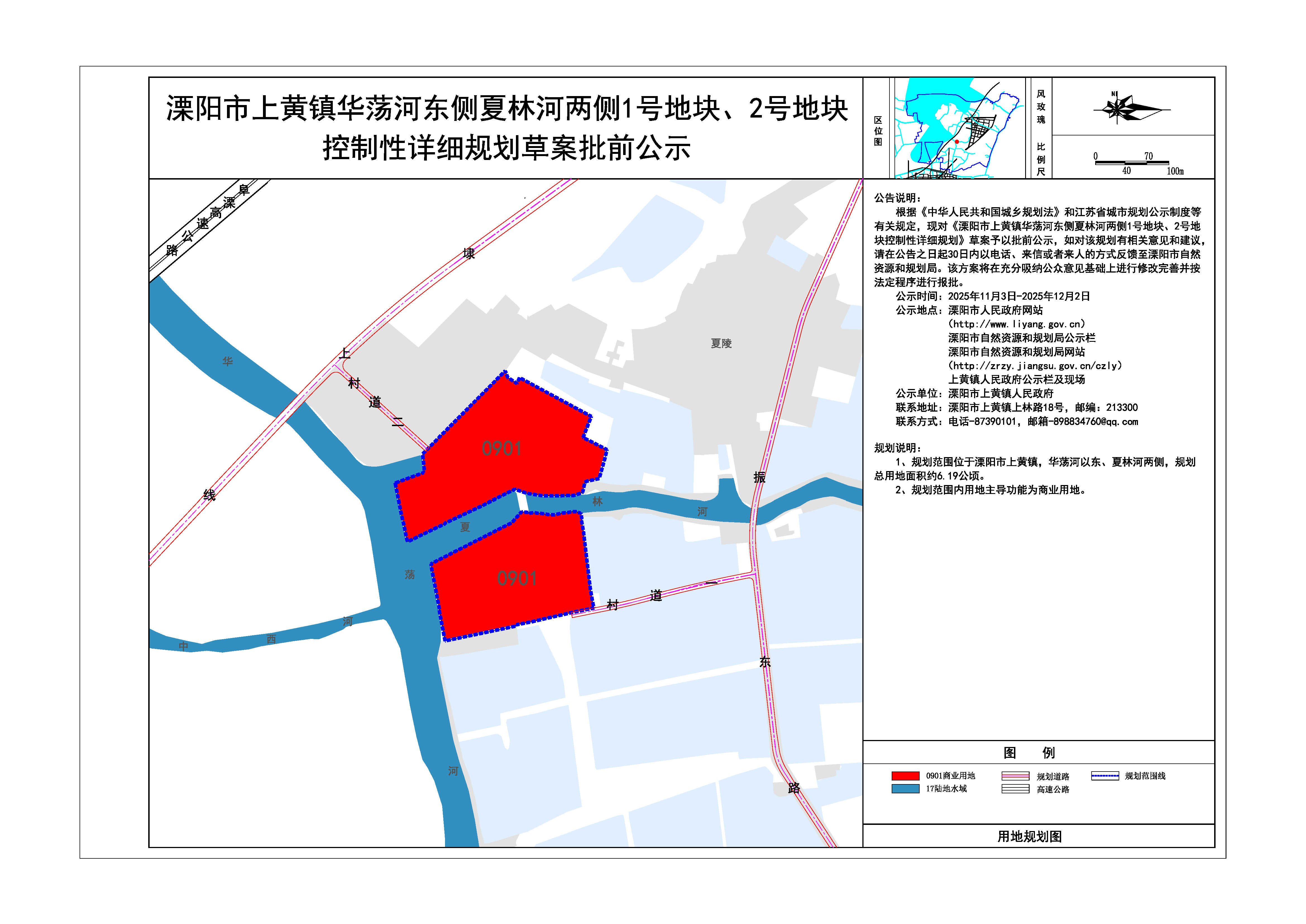 溧阳市上黄镇华荡河东侧夏林河两侧1号地块、2号地块控制性详细规划草案批前公示