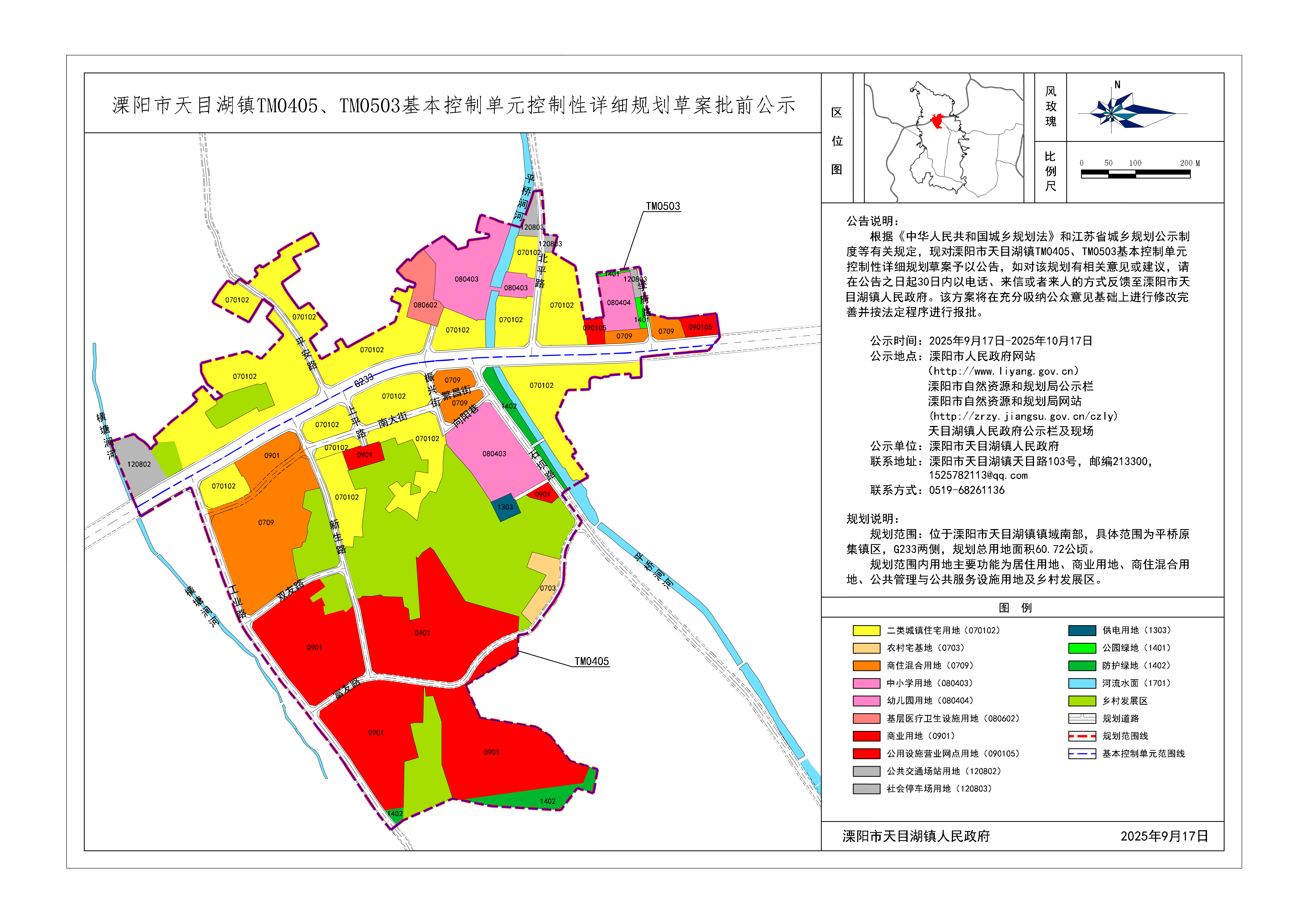 溧阳市天目湖镇TM0405、TM0503基本控制单元控制性详细规划草案批前公示