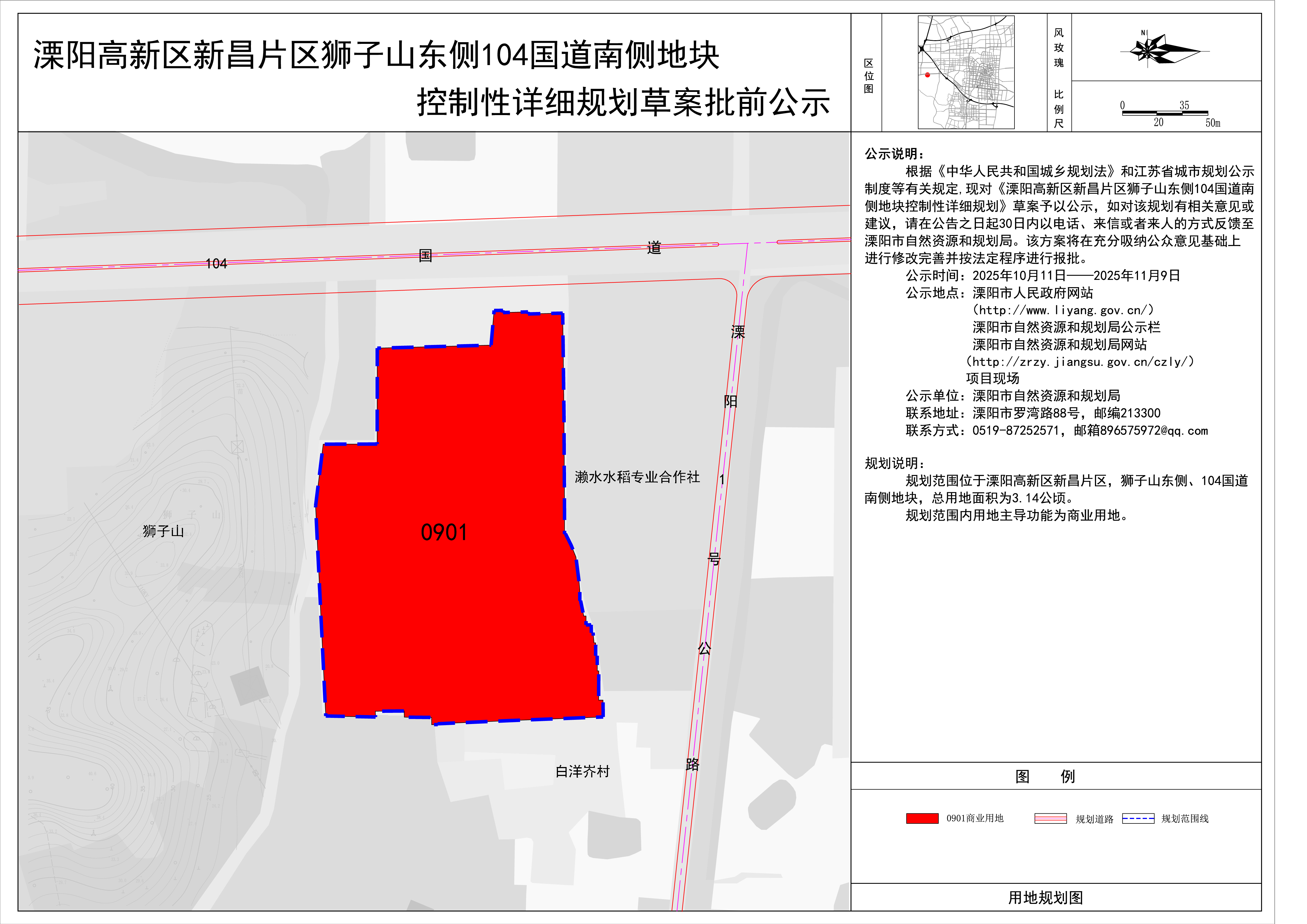 溧阳高新区新昌片区狮子山东侧104国道南侧地块控制性详细规划批前公示