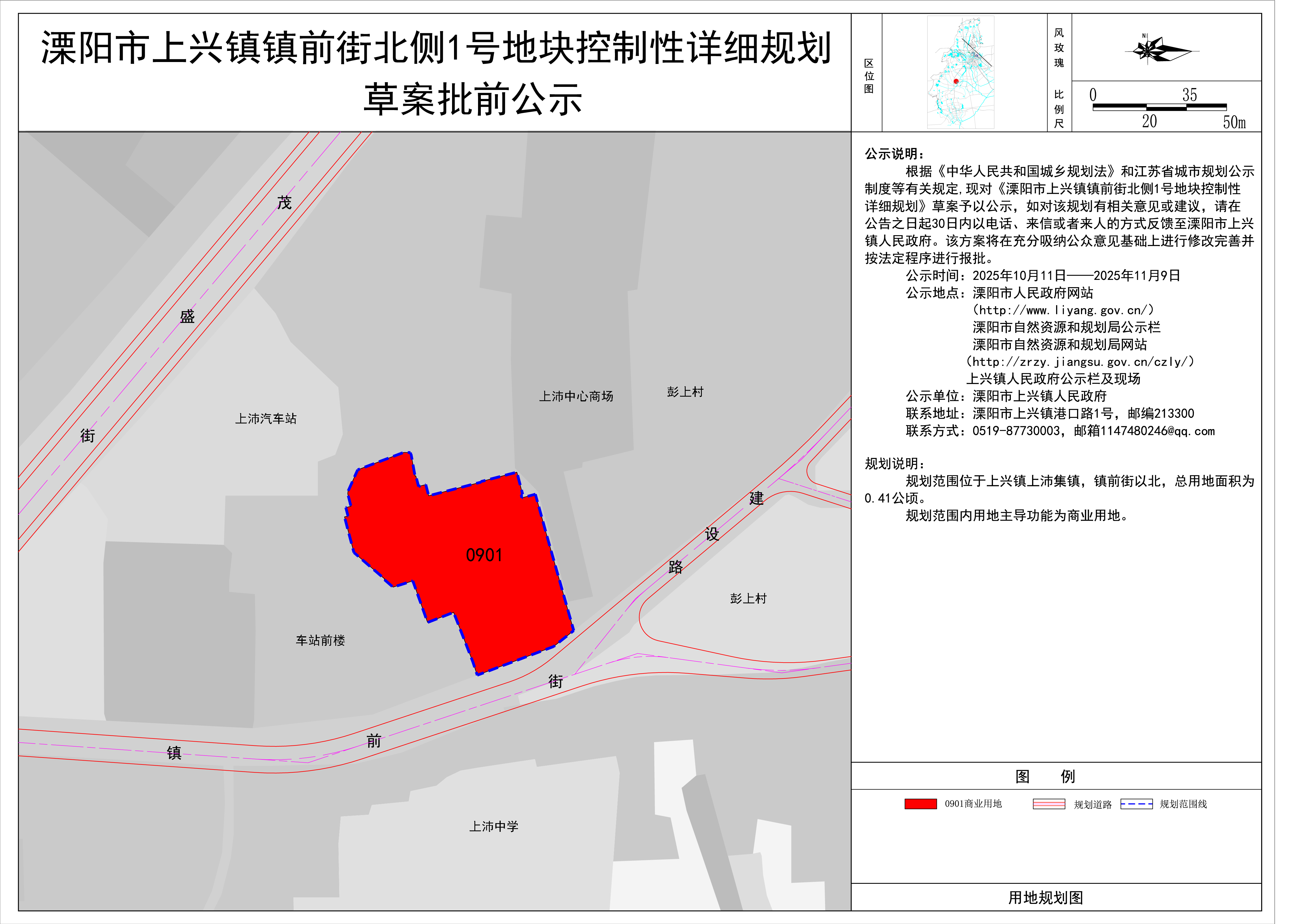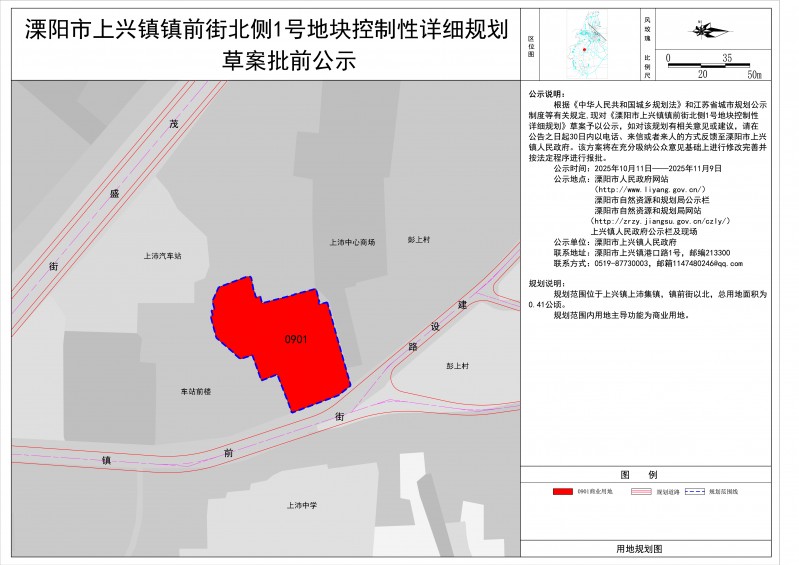《溧阳市上兴镇镇前街北侧1号地块控制性详细规划》批前公示