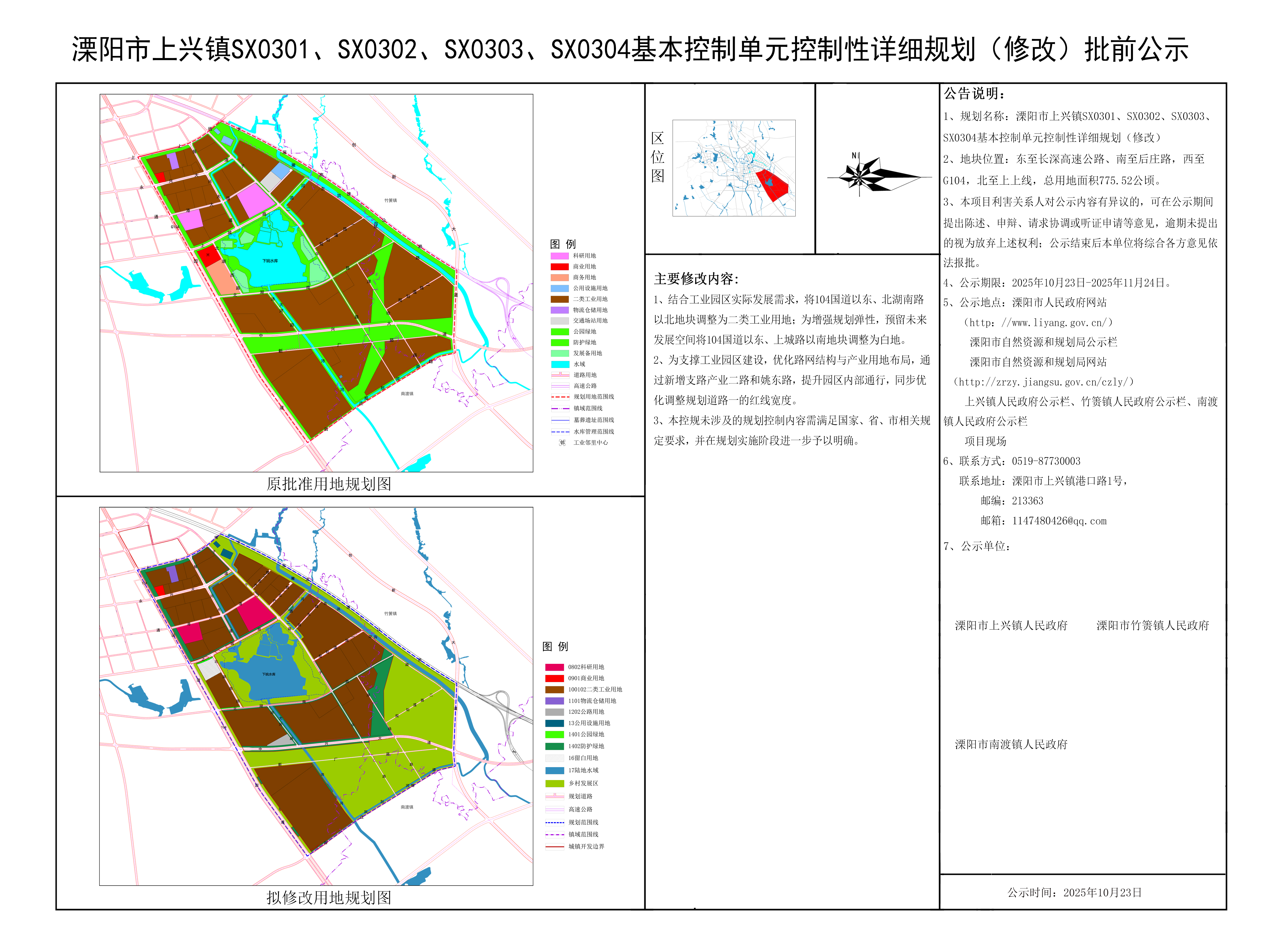 溧阳市上兴镇SX0301、SX0302、SX0303、SX0304基本控制单元控制性详细规划(修改)批前公示