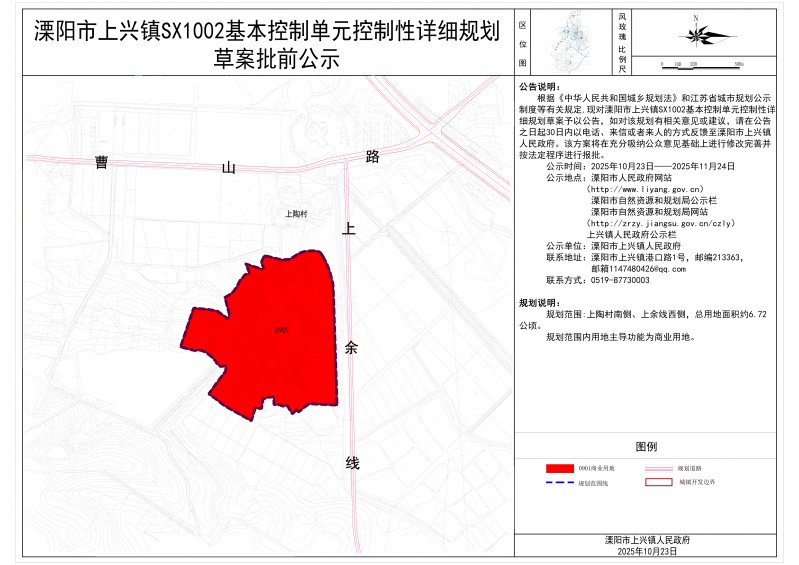 溧阳市上兴镇SX1002基本控制单元控制性详细规划草案批前公示