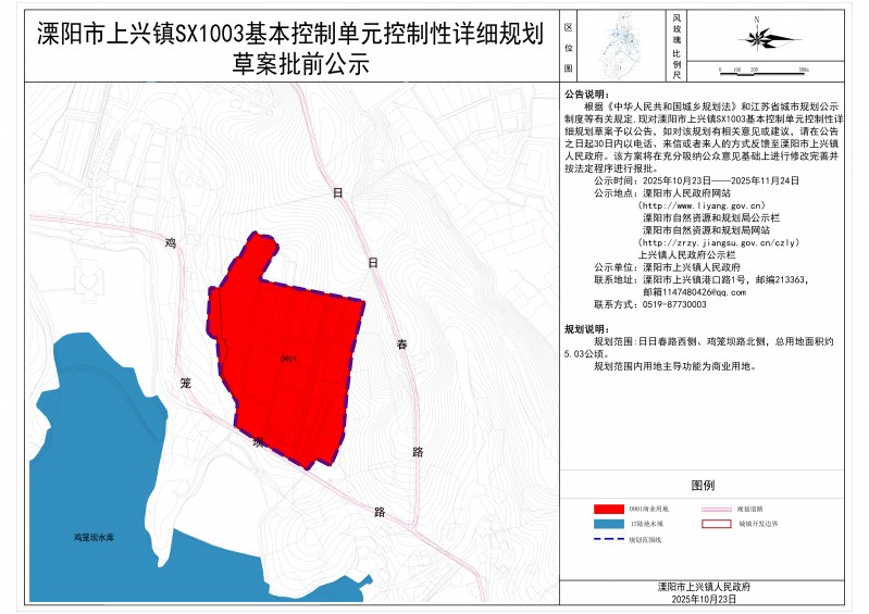 溧阳市上兴镇SX1003基本控制单元控制性详细规划草案批前公示