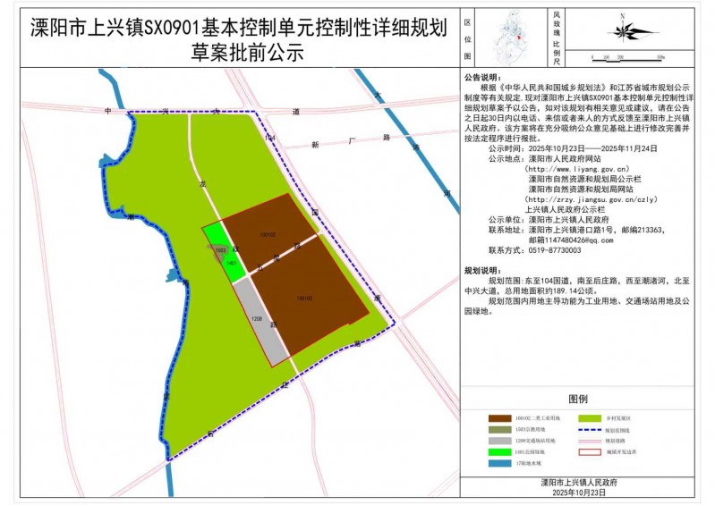 溧阳市上兴镇SX0901基本控制单元控制性详细规划草案批前公示