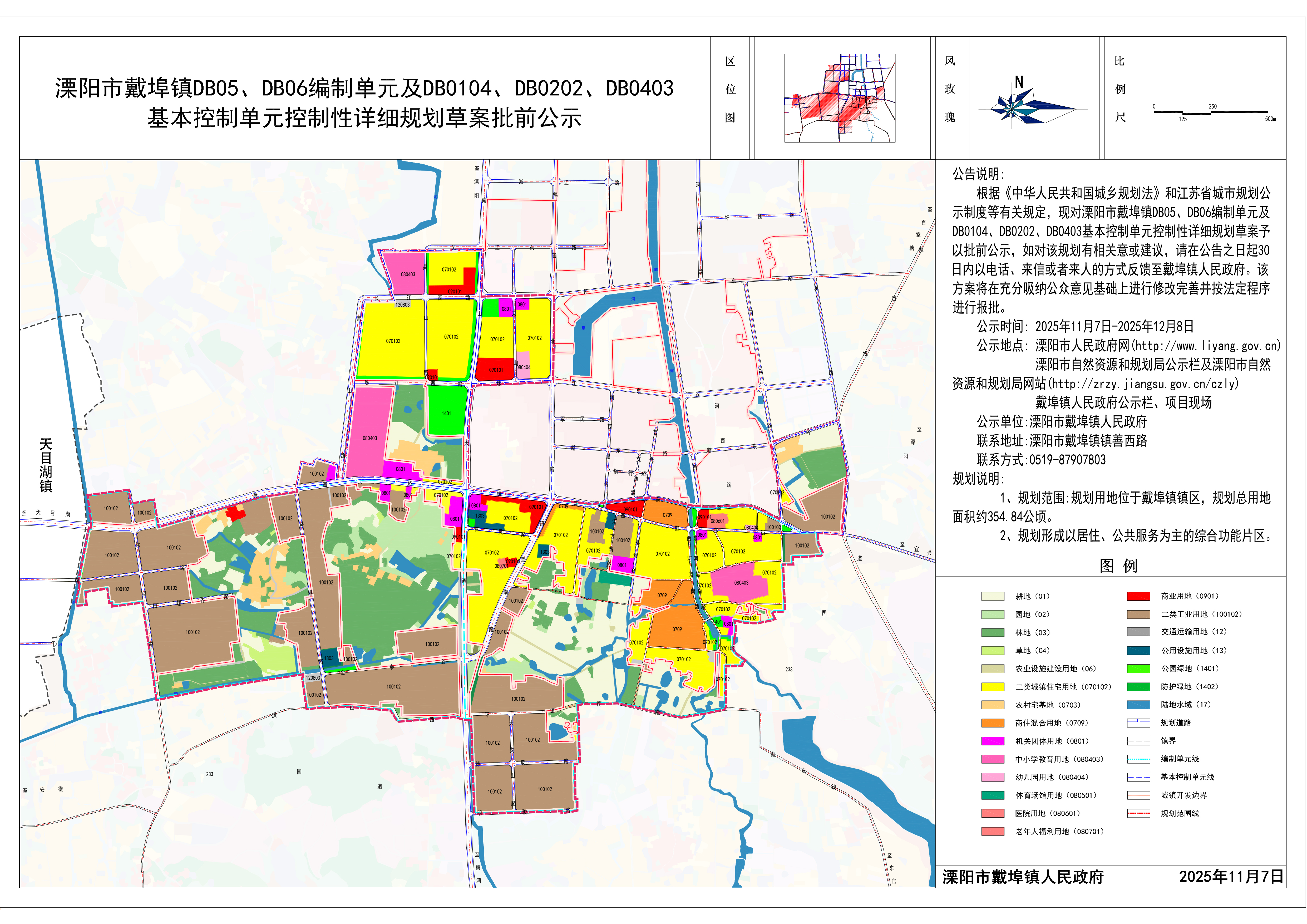 溧阳市戴埠镇DB05、DB06编制单元及DB0104、DB0202、DB0403基本控制单元控制性详细规划草案批前公示