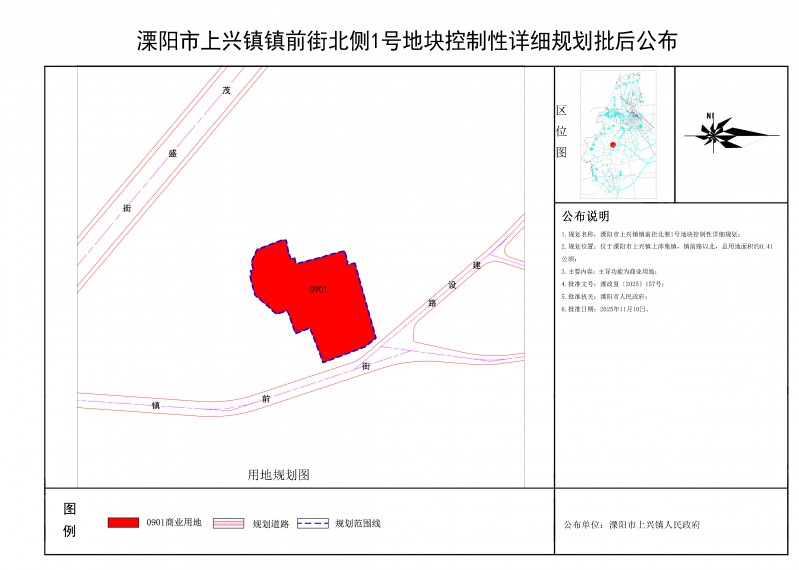 《溧阳市上兴镇镇前街北侧1号地块控制性详细规划》批后公布