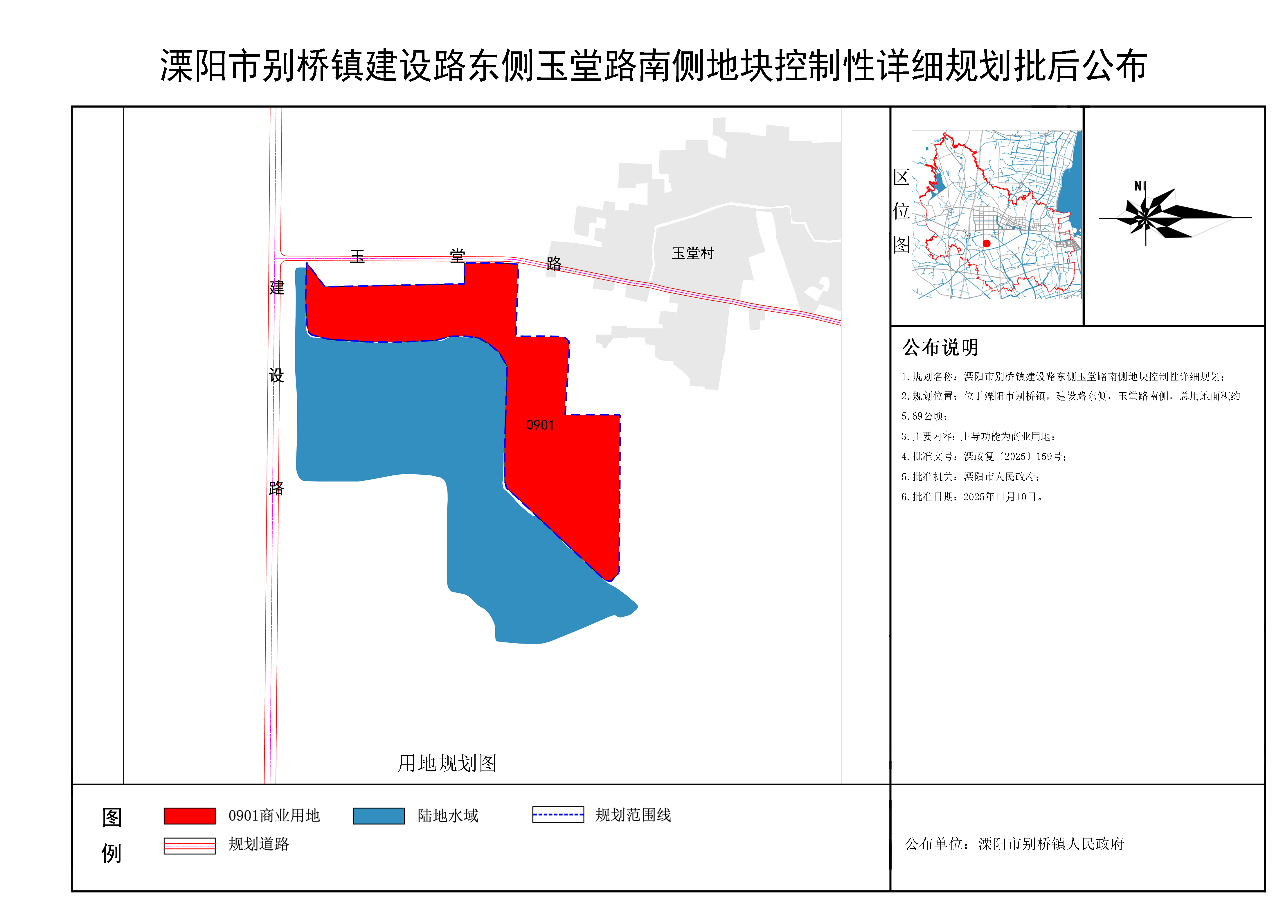 溧阳市别桥镇建设路东侧玉堂路南侧地块控制性详细规划批后公布
