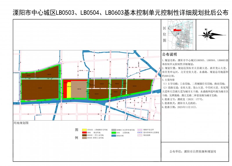 溧阳市中心城区LB0503、LB0504、LB0603 基本控制单元控制性详细规划批后公布