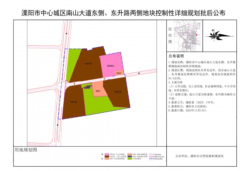 溧阳市中心城区南山大道东侧、东升路两侧地块控制性详细规划批后公布