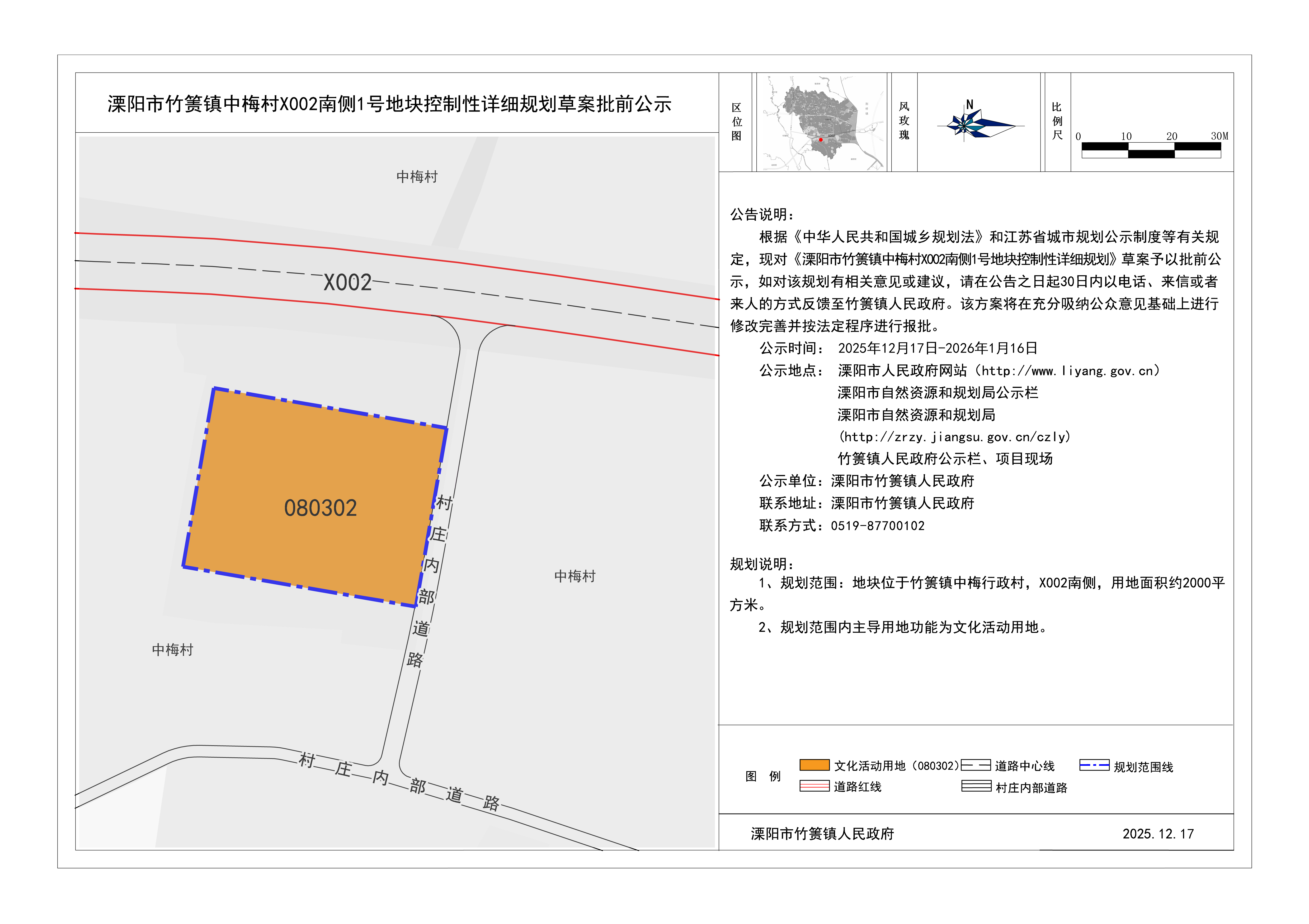 溧阳市竹箦镇中梅村X002南侧1号地块控制性详细规划草案批前公示
