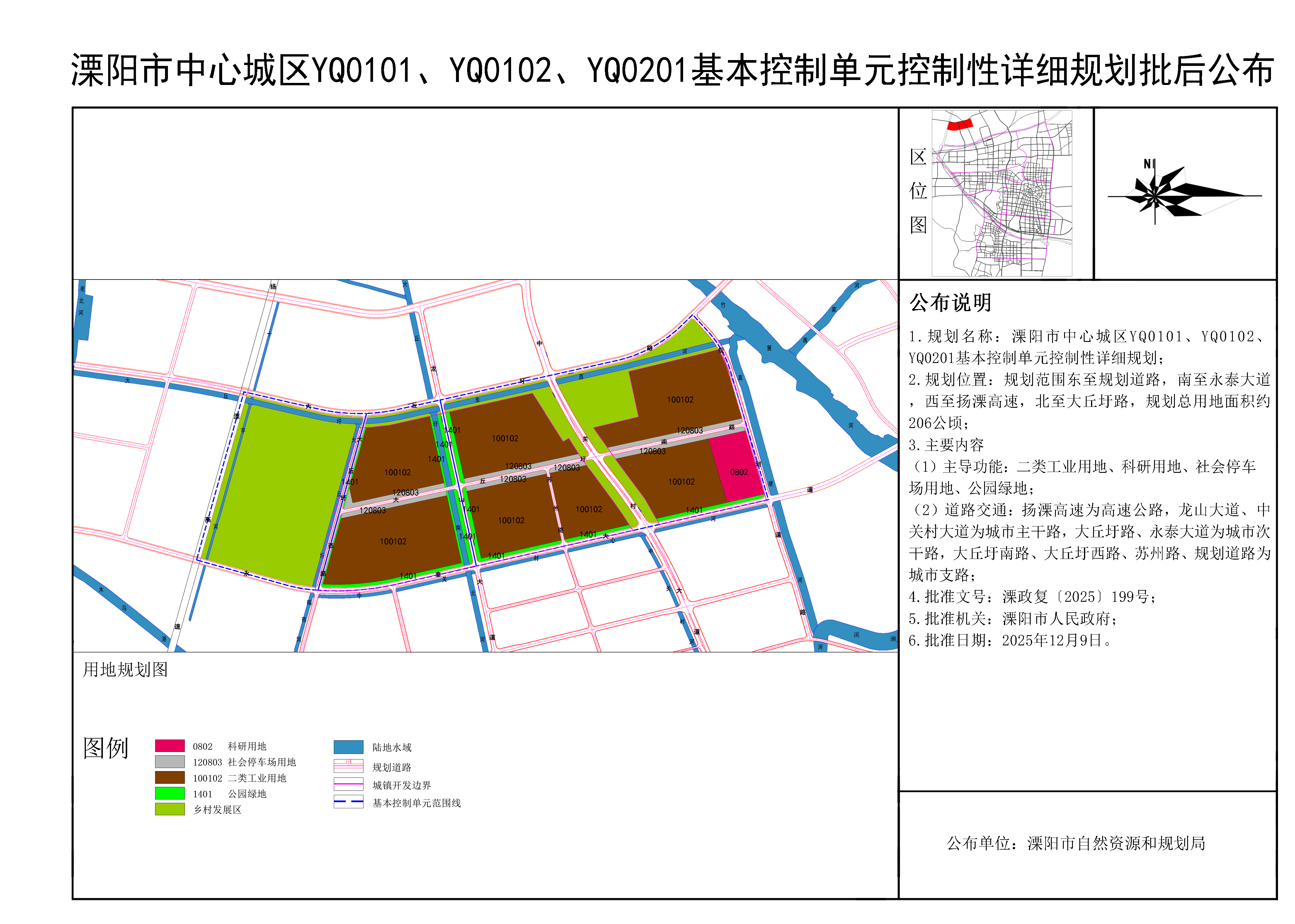 溧阳市中心城区YQ0101、YQ0102、YQ0201基本控制单元控制性详细规划批后公布