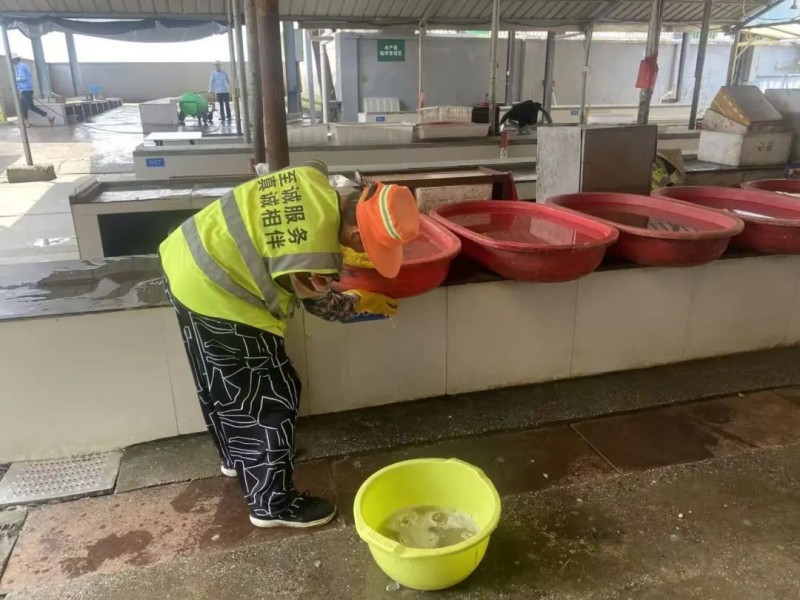 一、卫生保洁精细化,擦亮市场文明底色。推行“摊前三包”(包卫生、包秩序、包消杀)制度,要求商户清理台面、地面油污,垃圾即产即清。市场配备专职保洁团队,实施“冲洗+消杀”模式,确保无卫生死角。投放灭鼠毒饵站,定期补充药剂并做好记录,每日巡查商户卫生状况并开展集中消杀。