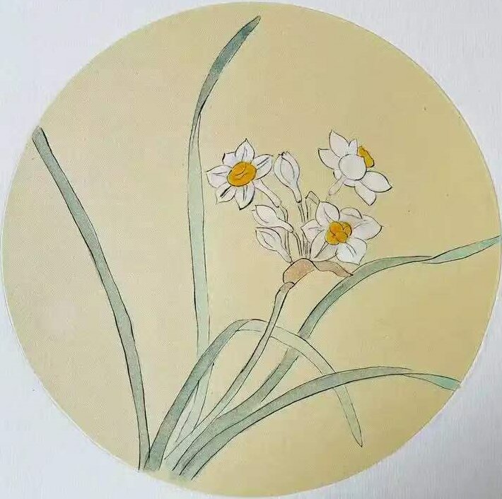 三月,圆陶板:水仙<三国·洛神>(练线条)