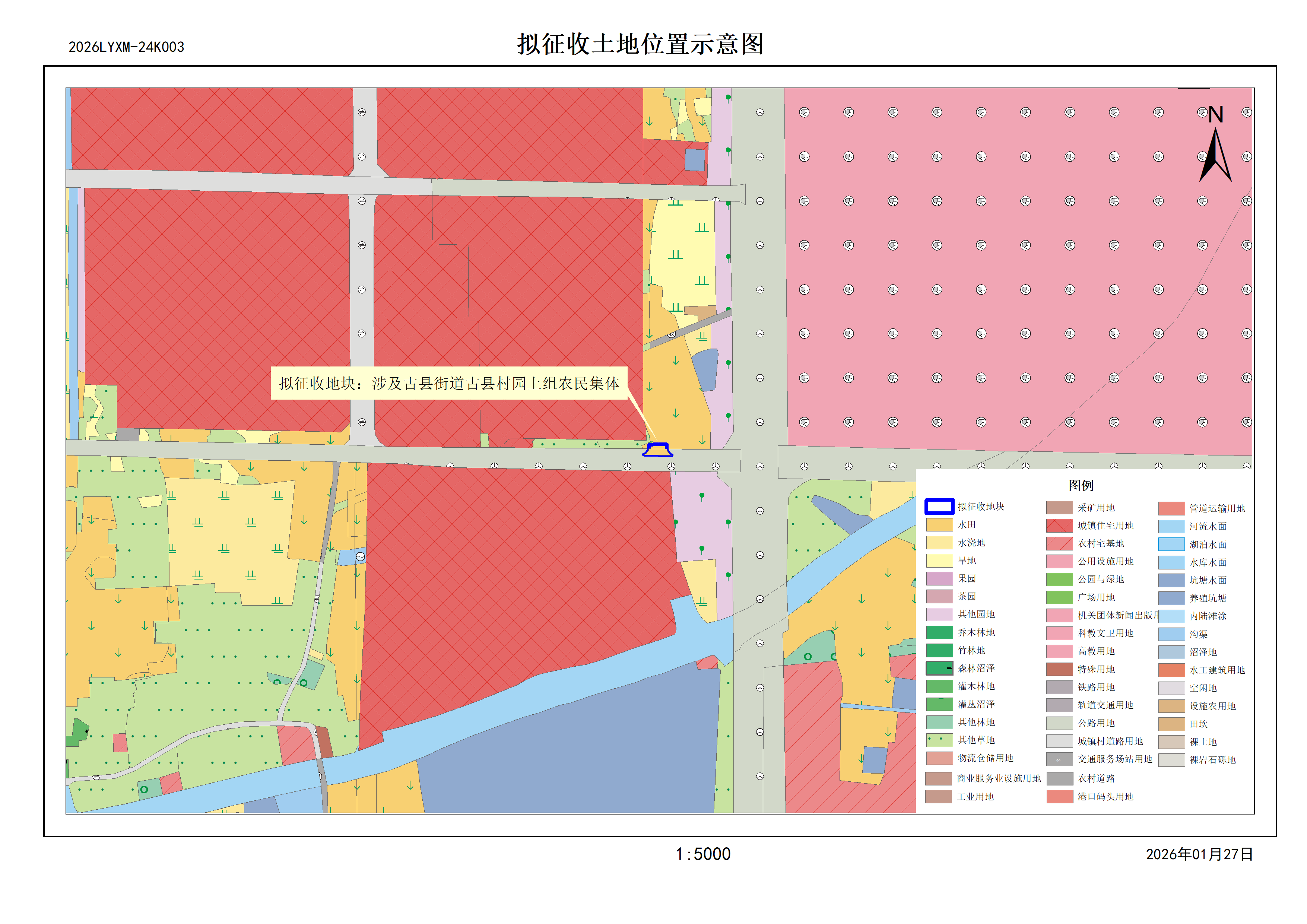 本次拟征收土地2026LYXM-24K003位于古县街道古县村园上组范围内。拟征收土地位置详见附图。