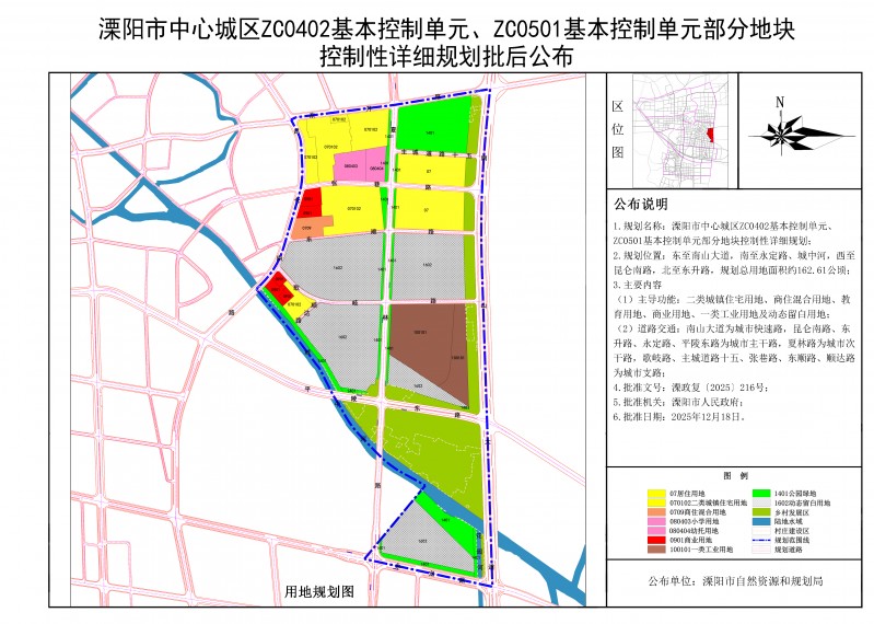 溧阳市中心城区ZC0402基本控制单元、ZC0501基本控制单元部分地块控制性详细规划批后公布