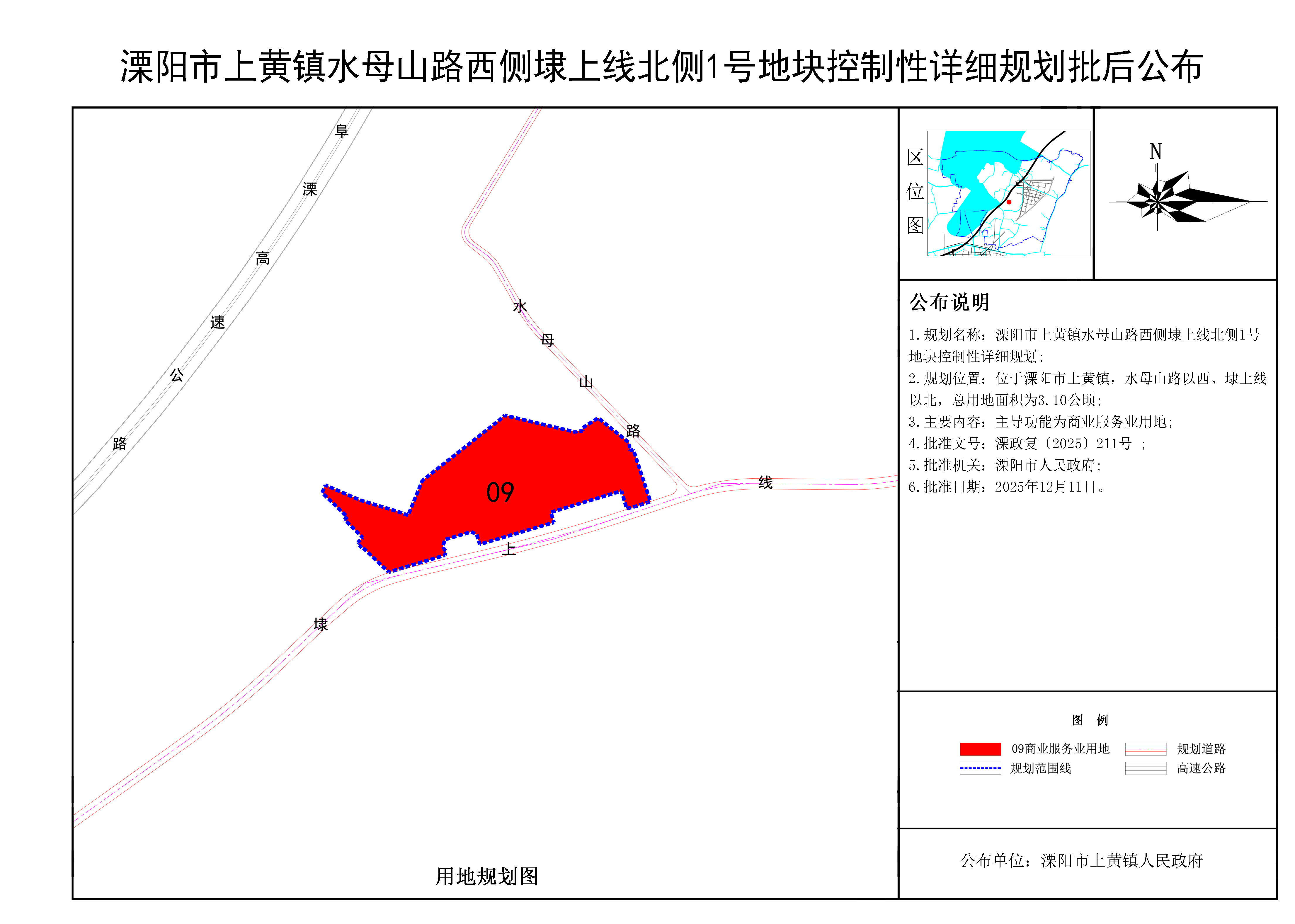 溧阳市上黄镇水母山路西侧埭上线北侧1号地块控制性详细规划批后公布