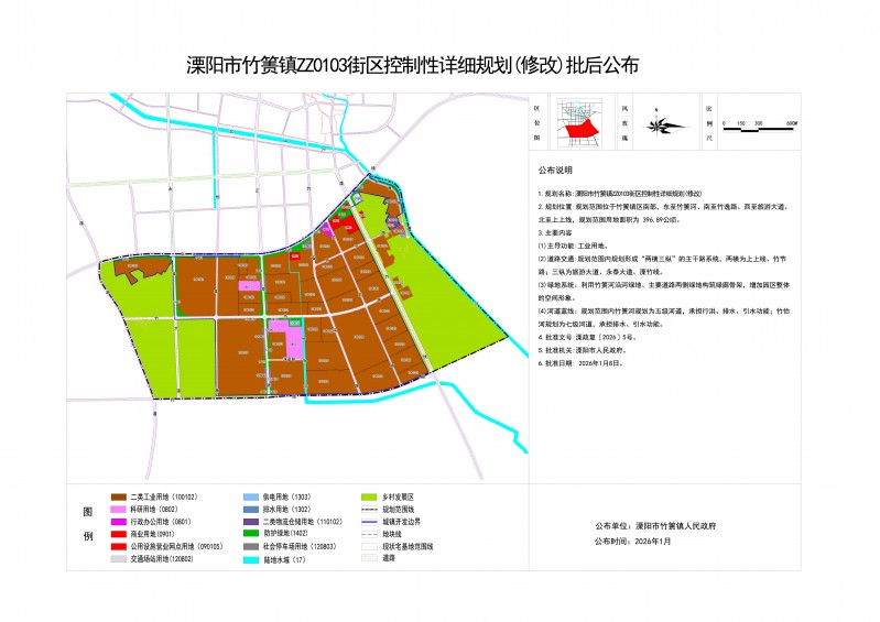 溧阳市竹箦镇ZZ0103街区控制性详细规划(修改)批后公布