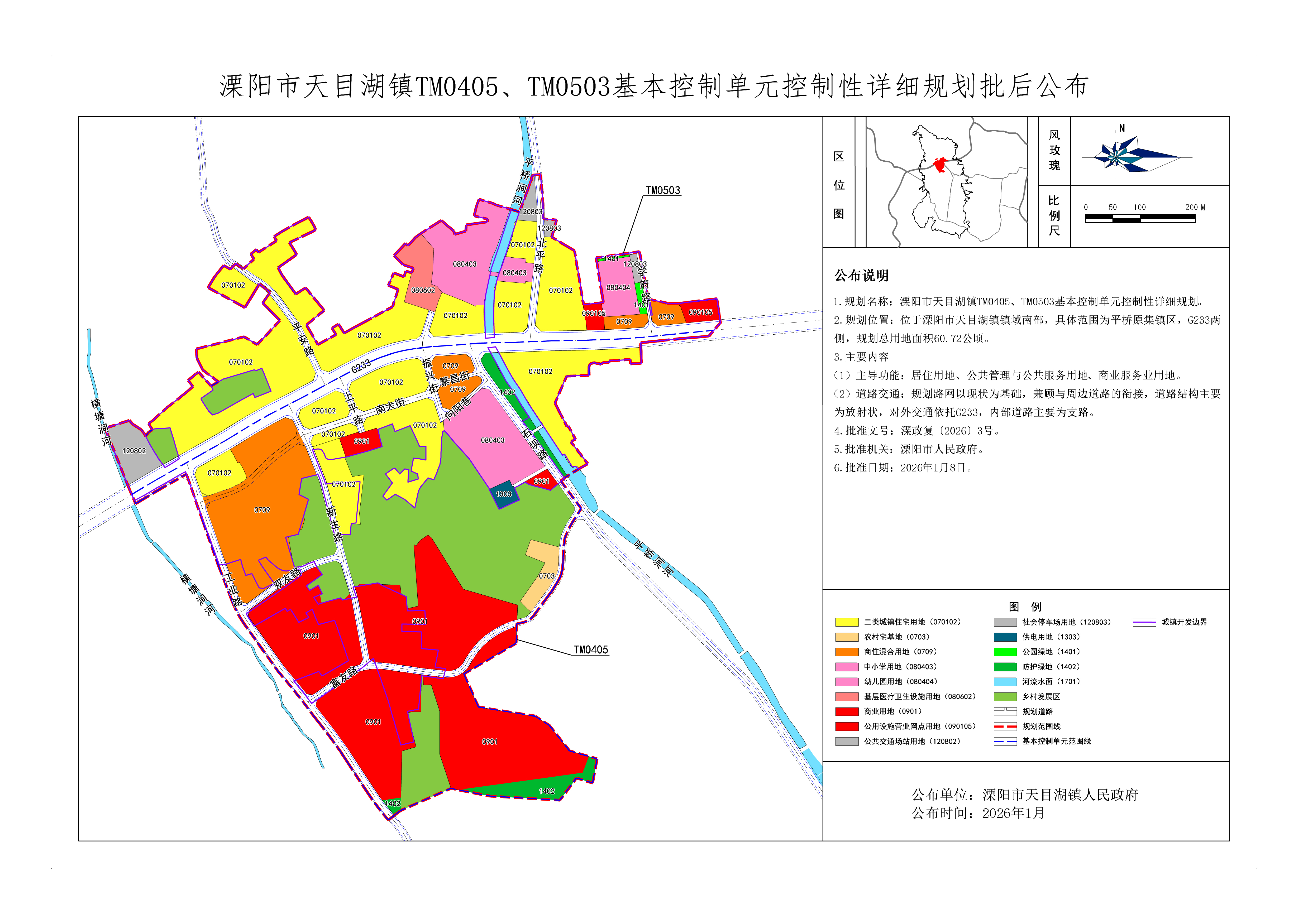溧阳市天目湖镇TM0405、TM0503基本控制单元控制性详细规划批后公布