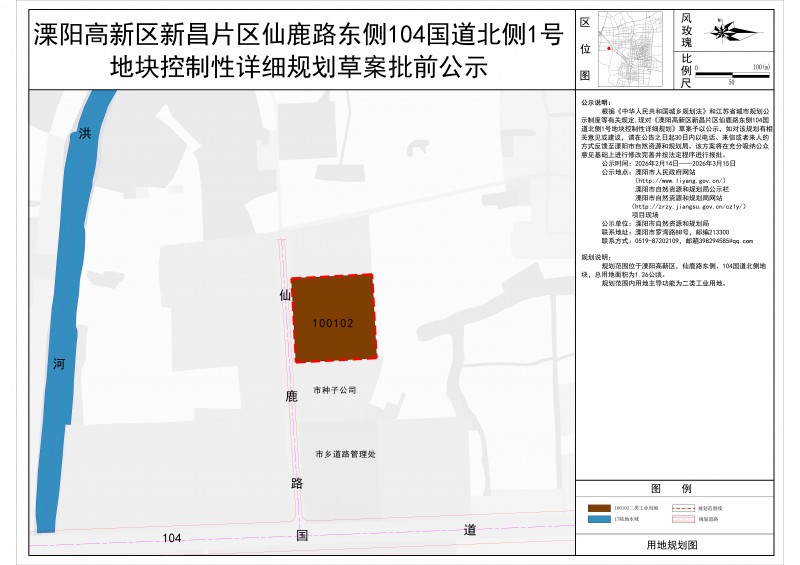溧阳高新区新昌片区仙鹿路东侧104国道北侧1号地块控制性详细规划草案批前公示